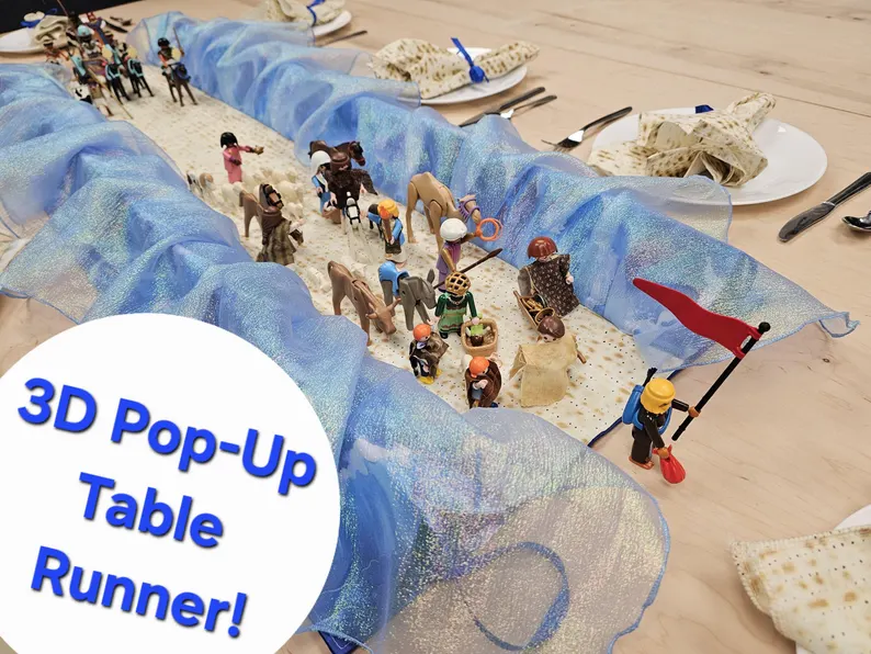 We have just released many new Matzah & Passover items in our online store, including a new 3D Parting of the Red Sea Table Runner, matching napkins, napkin rings and more!
